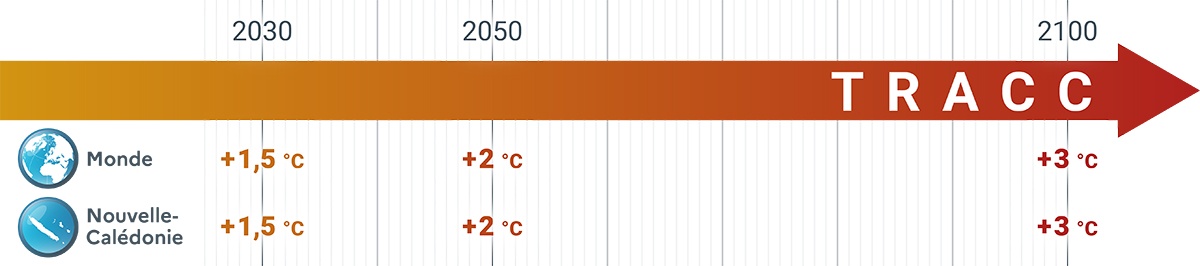 Accompagnement > Diagnostics climatiques > Evolution du climat en Nouvelle-Calédonie selon la TRACC