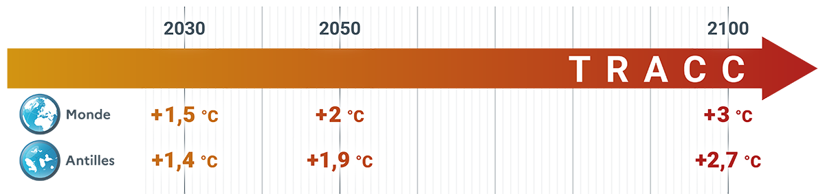 La Trajectoire de Réchauffement de Référence pour l’Adaptation au Changement Climatique (TRACC)La Trajectoire de Réchauffement de Référence pour l’Adaptation au Changement Climatique (TRACC), mise en place dans le cadre du nouveau Plan National d’Adaptation au Changement Climatique (PNACC-3), définit le climat auquel les territoires français doivent se préparer tout au long du 21e siècle. L’objectif est d’établir une référence commune pour élaborer des stratégies d’adaptation au changement climatique. La TRACC se distingue de l’objectif national d’atténuation fixé par l’Accord de Paris. Elle repose sur les engagements actuels des États en matière de réduction des émissions de gaz à effet de serre. Le Giec estime qu’en l'absence de mesures additionnelles, le réchauffement planétaire atteindra environ +1,5 °C en 2030, +2 °C en 2050 et +3 °C en 2100 par rapport à la période préindustrielle. La TRACC décline ces trois niveaux de réchauffement planétaires en réchauffement régional sur les territoires français, en tenant compte des contrastes géographiques.