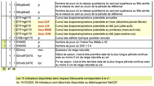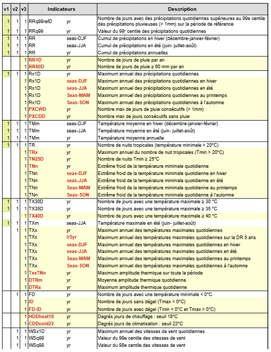 Avis d'incident : Une erreur de formatage affecte les centiles multi-modèles des fichiers NetCDF ajoutés le 14/10/2025. Veuillez consulter la colonne v3 de ce tableau pour voir les indicateurs concernés : Tableau des indicateurs TRACC 2023-2025. La résolution est en cours et la correction est attendue courant janvier. |